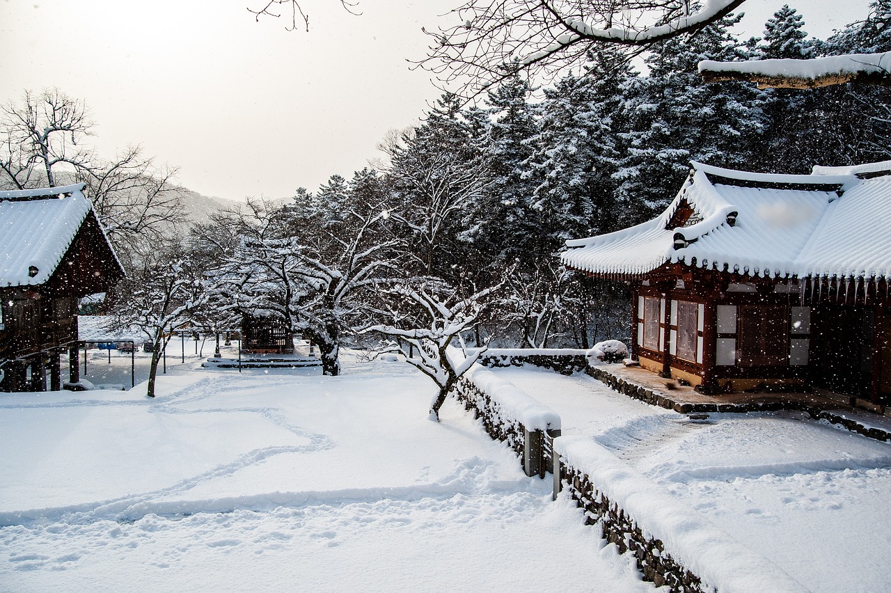 부안군의 내소사는 사계절 풍경이 아름다운 곳입니다. 내소사는 백제 무왕 34년에 창건된 전통 문화재 사찰이라고 합니다. 임진왜란 때 절의 많은 부분이 소실되었으나 조선 인조 11년 때 중건 중수하였으며 이후 우암 혜산 선사가 1983년 내소사에 주석하고 정비, 복원을 하여 오늘날의 내소사가 되었습니다. 내소사에는 전나무 숲길이 길게 이어져 있는데, 침엽수의 맑은 향과 쭉 뻗은 전나무를 보면 사색하기 더없이 좋은 장소입니다. 특히, 겨울에 눈이 쌓인 전나무 숲은 겨울 왕국을 연상 시는 매력적인 아름다움을 보여줍니다. 내소사 일주문에서 시작되는 전나무 숲길을 걸어가면 오른쪽 샛길리 있는데 샛길로 약 200m 정도 들어가면 지장암을 볼 수 있습니다. 또한 부안 내소사의 대웅보전이 있는데 대웅보전은 보물 제291호이며, 규모는 정면 3칸 측면 3칸으로 팔각지붕과 문살은 꽃무늬로 되어있습니다. 대웅보전의 꽃 문살은 한국적인 아름다움을 잘 표현하였으며 나뭇결이 도톰하게 살아 있어 아름다움을 자랑하는 곳이기도 합니다. 대웅보전 내부에는 석가 불좌상을 중심으로 좌측은 문수보살 우측은 보현보살이 있으며 천장 공간에는 연꽃봉오리모양으로 조각되어 있습니다. 또한 조망이 일품인 청련암은 푸른 대나무 숲과 함께 해안이 보이는 청연암이 있습니다. 청련암은 겨울철의 설경이 아름다운 곳으로 신비로운 느낌을 자아냅니다.