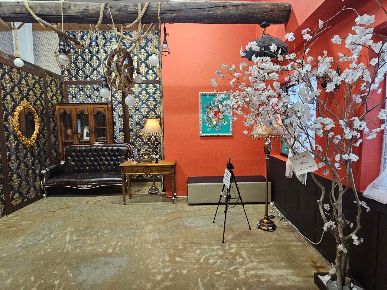 소품들과 함께 꾸며진 공간입니다.
