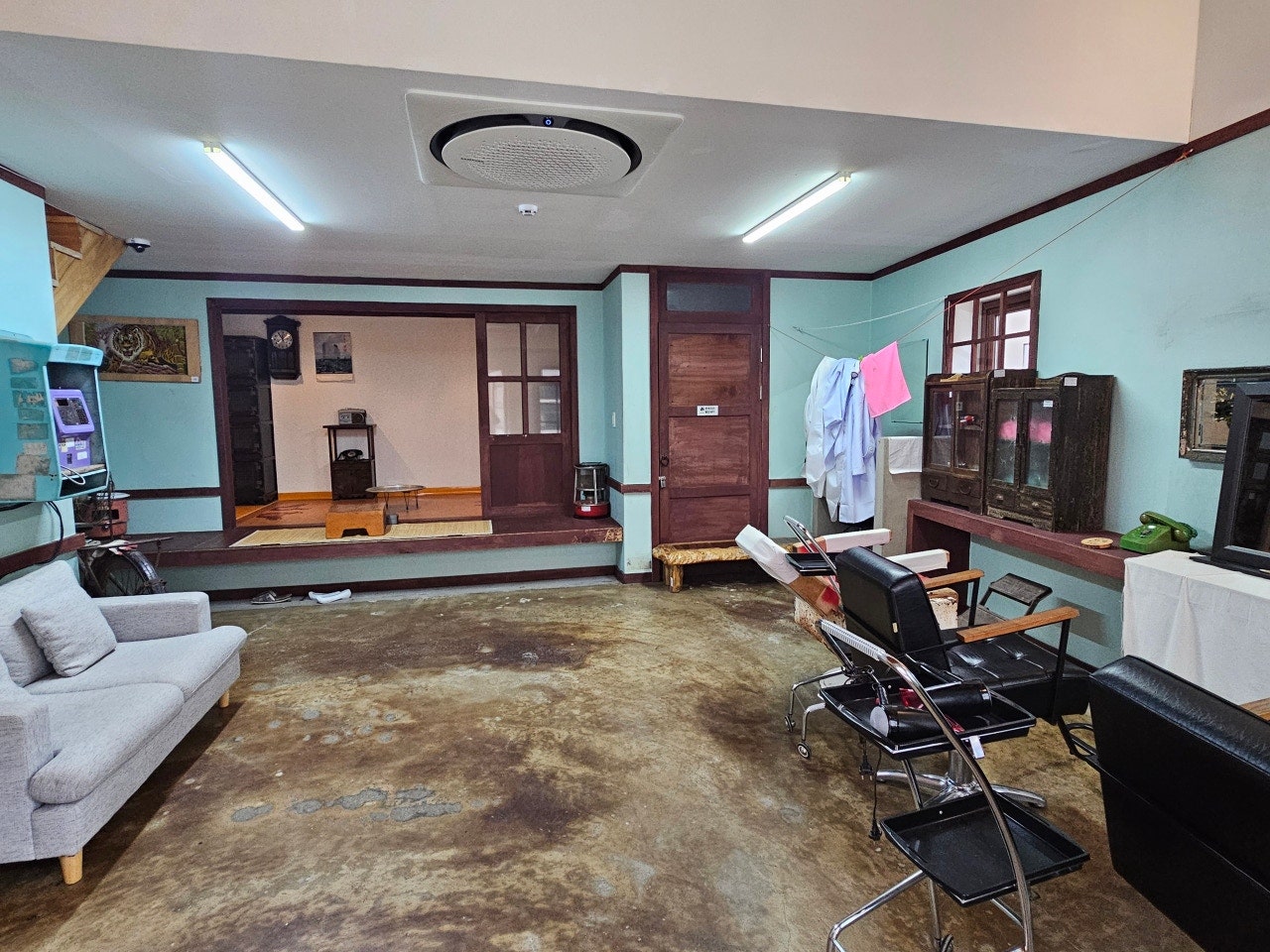 1970~70년대 이발소를 재현한 공간으로 의자, 영업신고증, 이발기, 공중전화, 자전거가 전시되어 있으며 의자에도 앉아