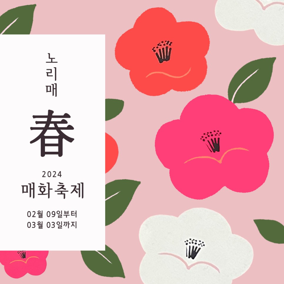 홍매화와 목련이 어우러진 풍경을 감상할 수 있는 곳입니다. 노리매 축제 기간 동안은 스탬프 투어가 진행되니 투어