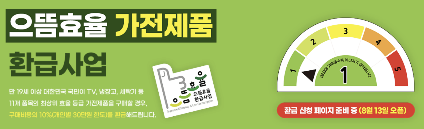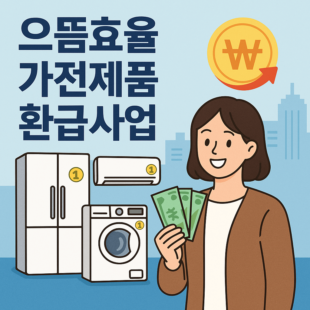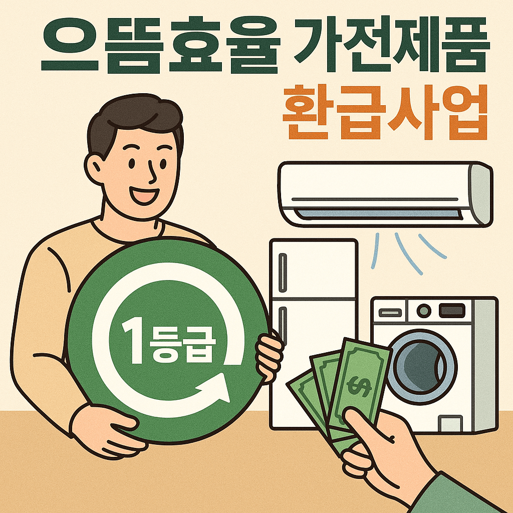2025년 7월 4일부터 시작된 ‘으뜸효율 가전제품 환급사업’은 에너지 효율 최상위 가전제품 구매 시 구매 금액의 10%를 환급해주는 제도로, 최대 30만 원까지 받을 수 있어 가정의 전기요금 절감과 친환경 소비를 동시에 실천할 수 있는 기회입니다.